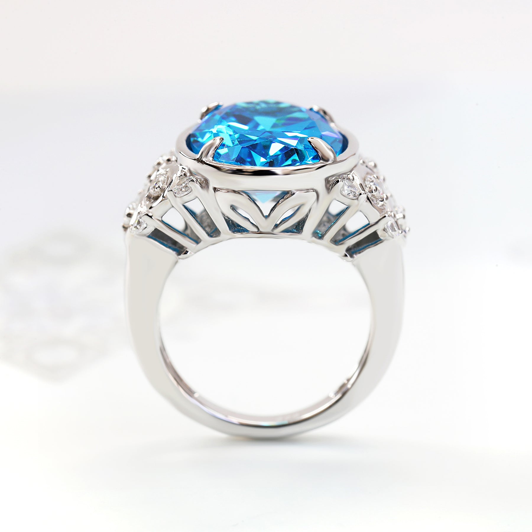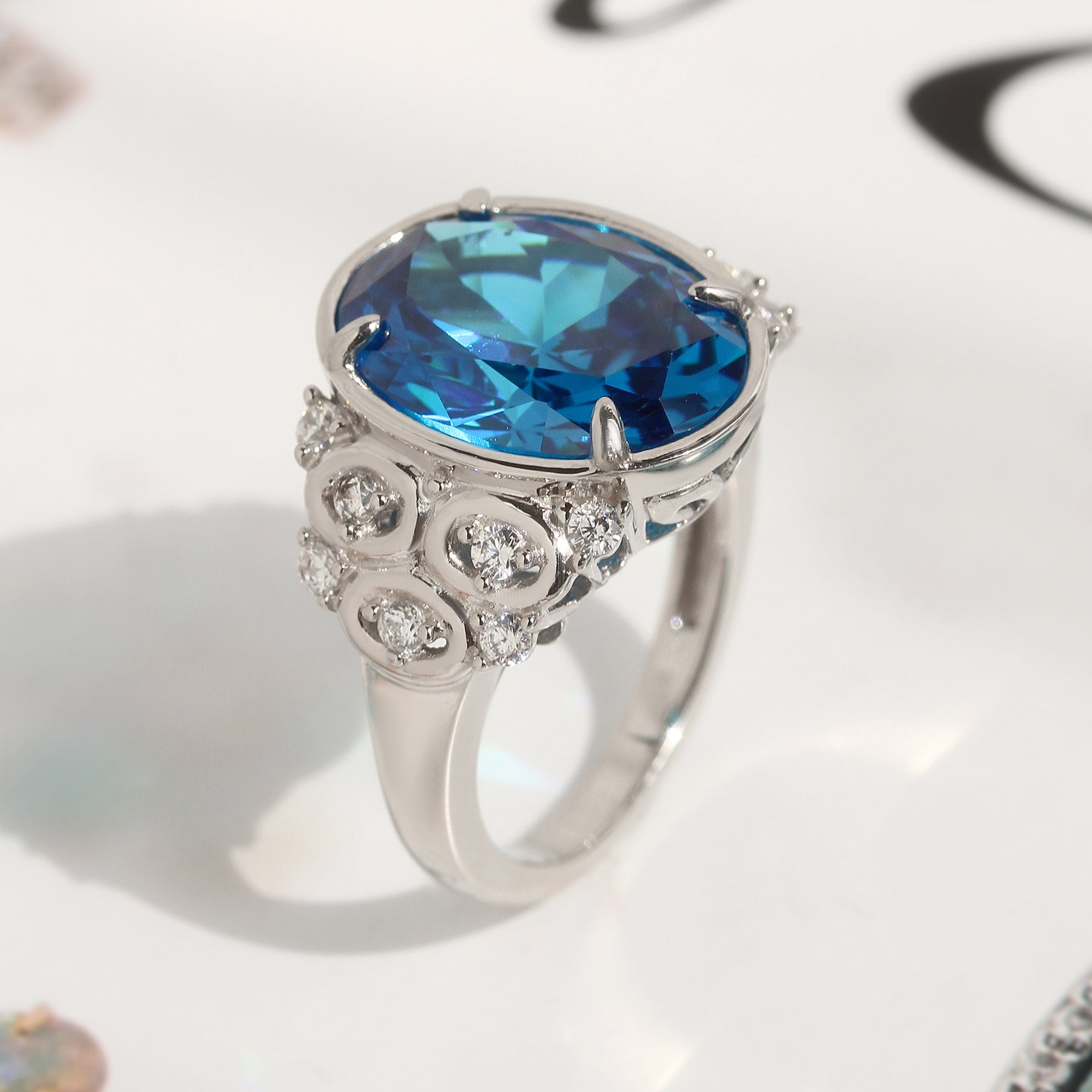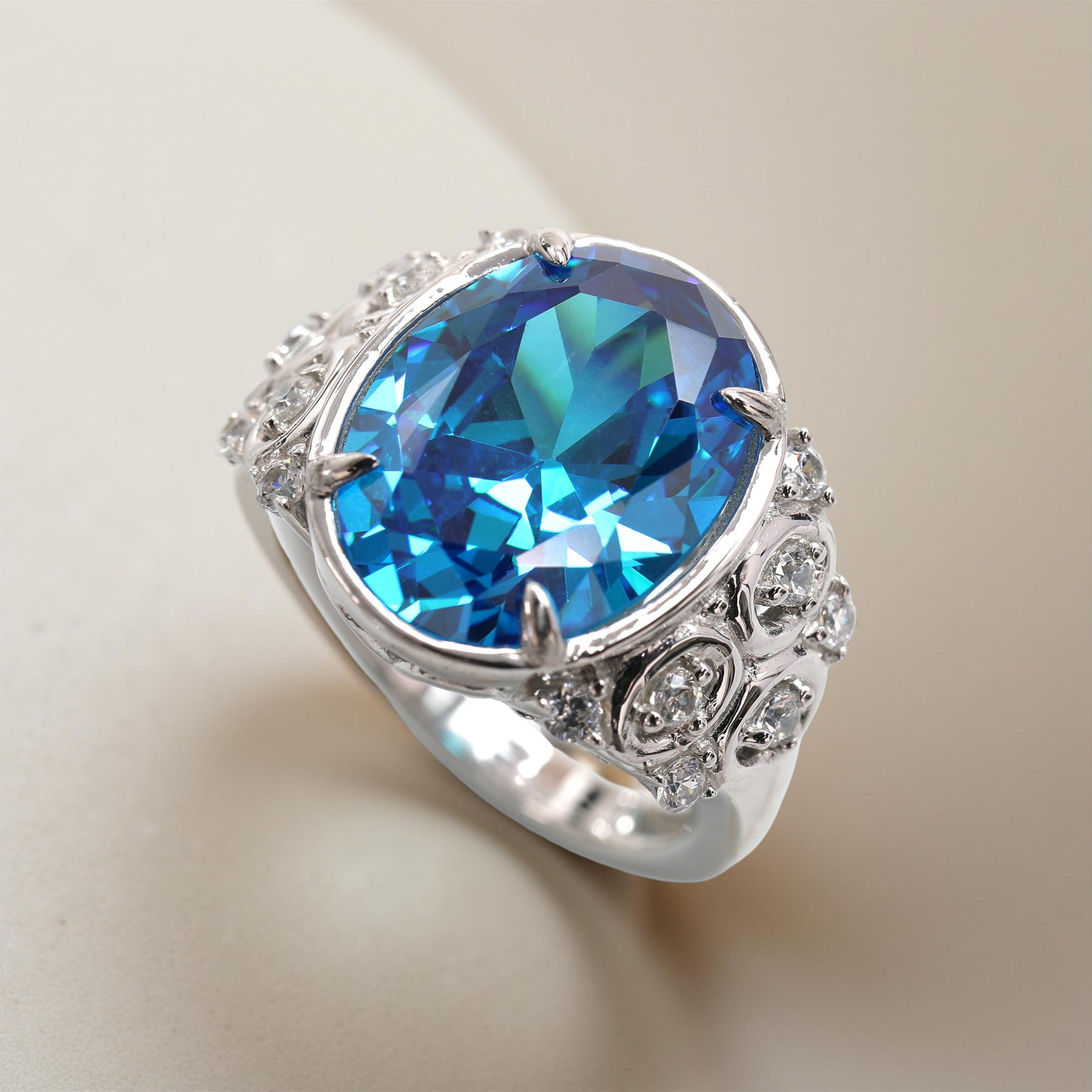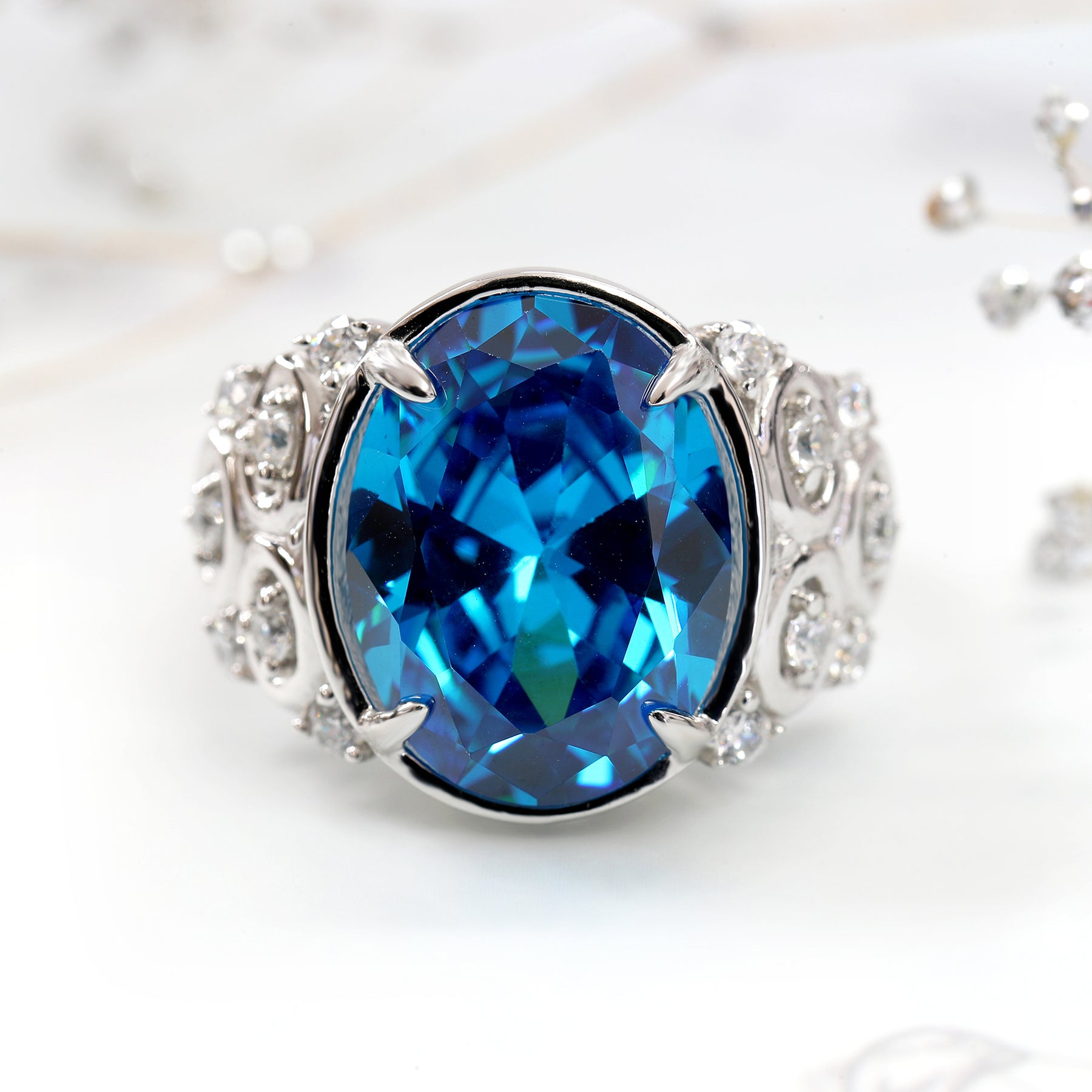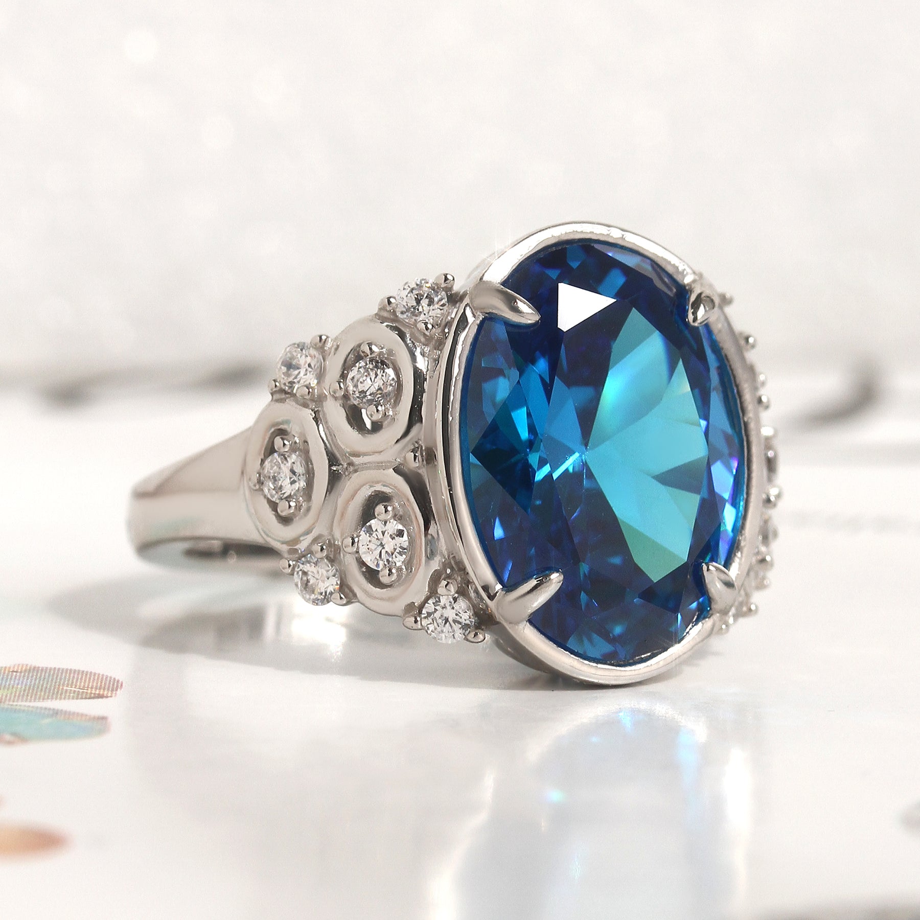 Blue Hour Statement Ring with 9.3 carat blue oval cubic zirconia in rhodium plated sterling silver