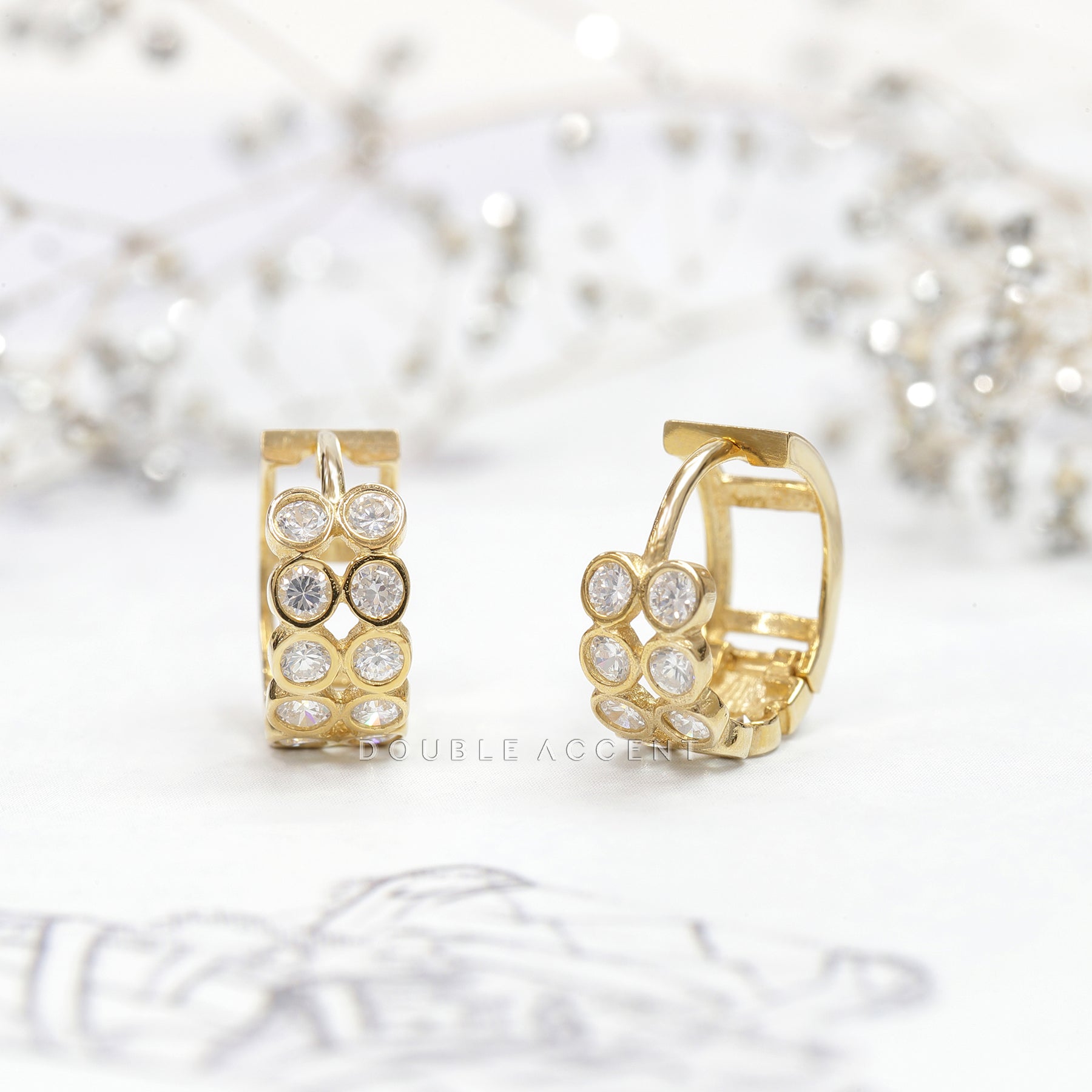 Flush Setting Sleeper Real Gold Huggie Earrings Also Used As Cartilage Earrings