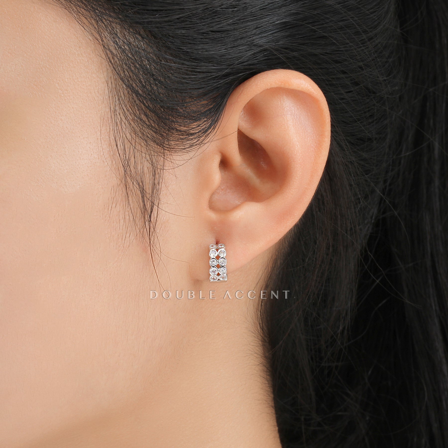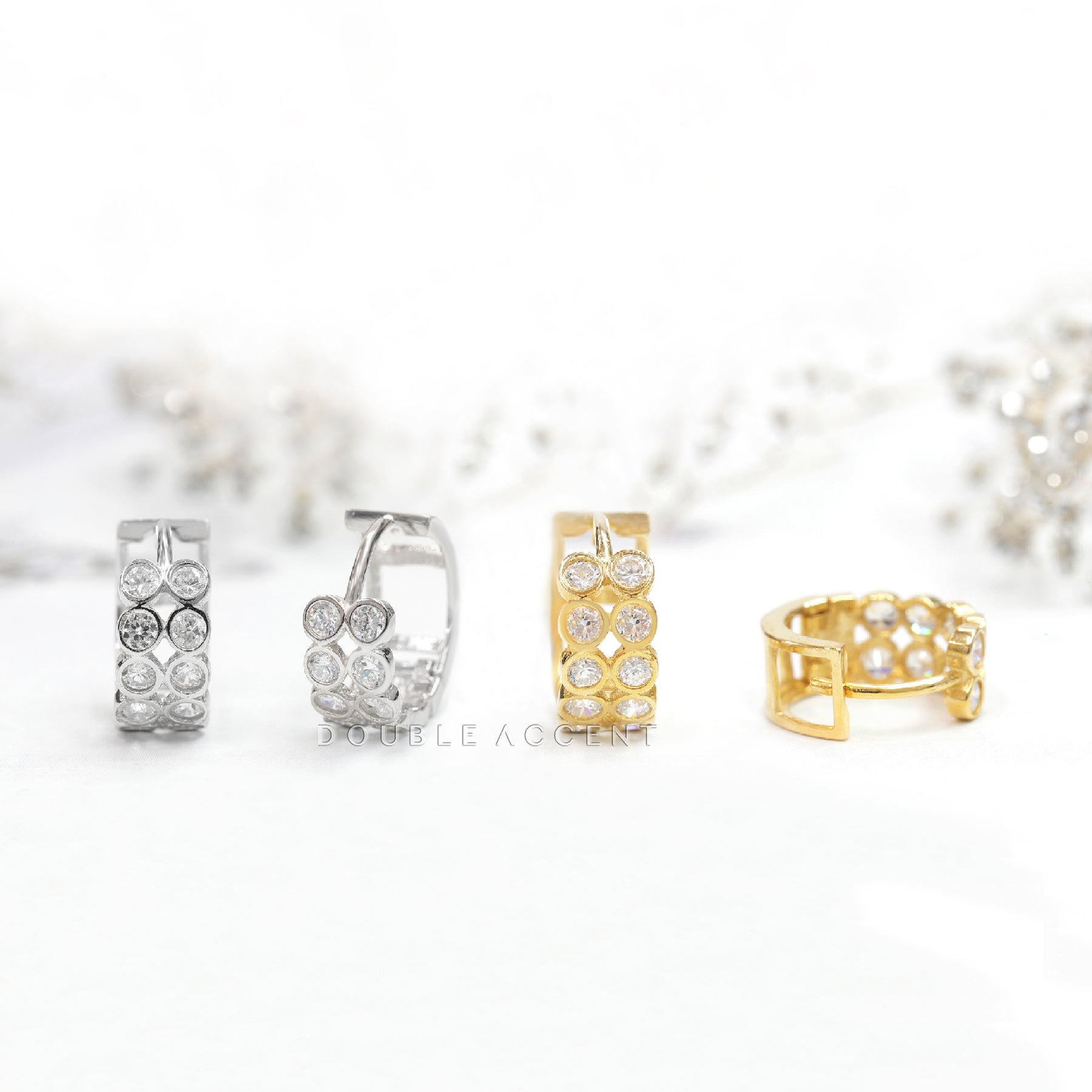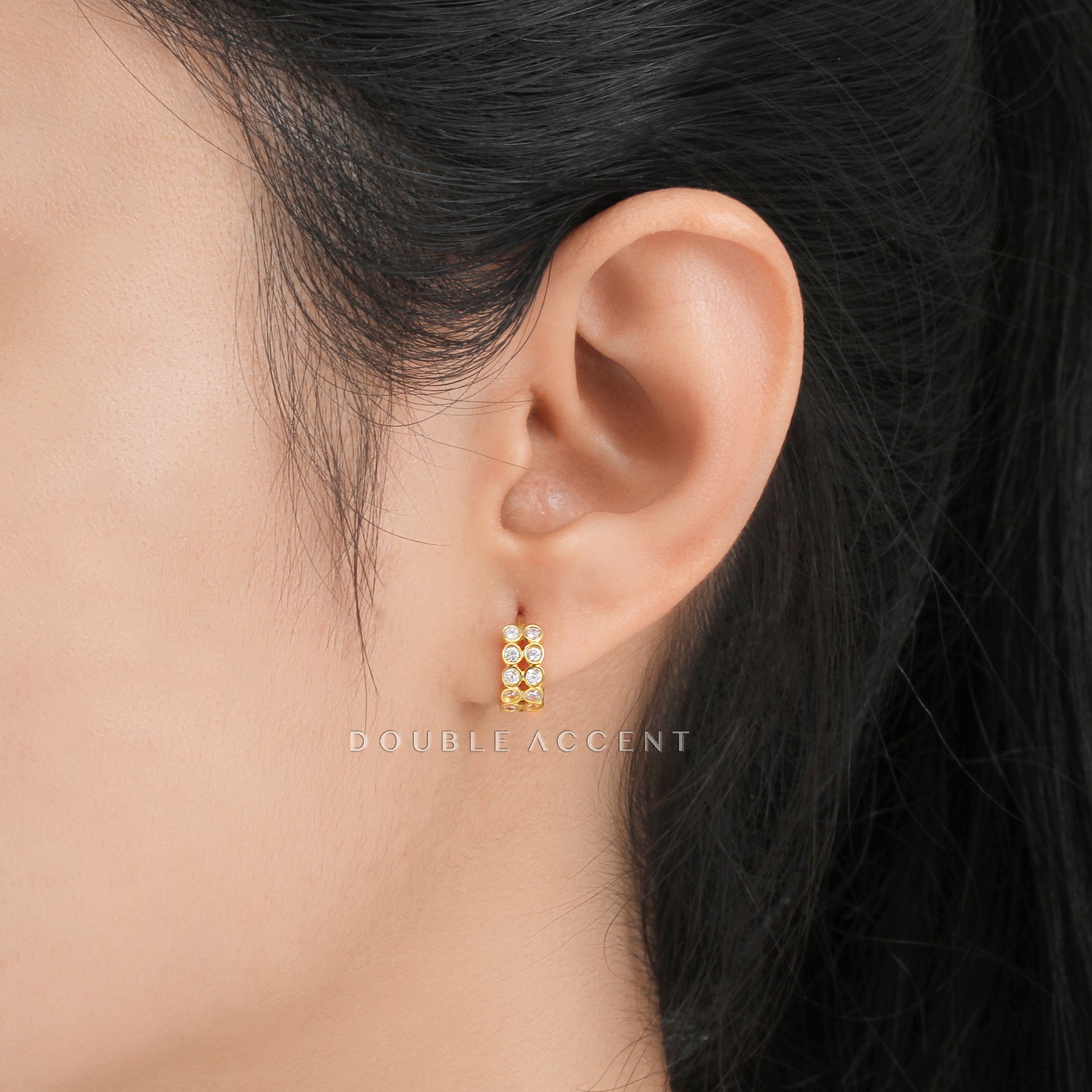 Solid 14K Gold Two Row Huggie Hoop Cartilage Earrings