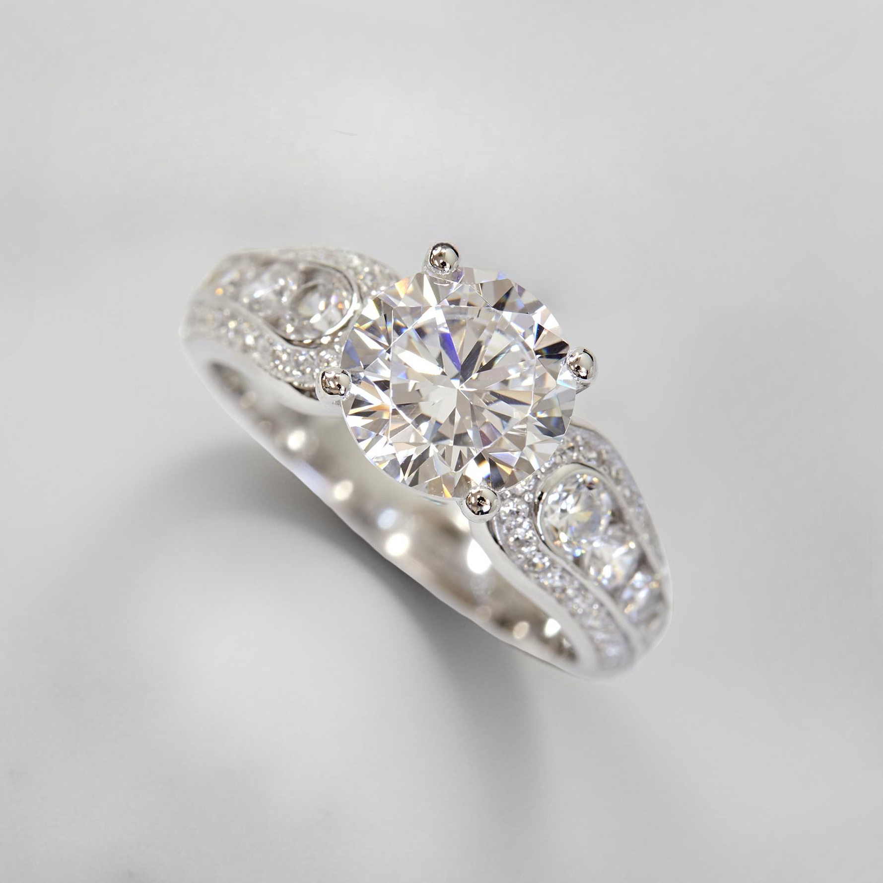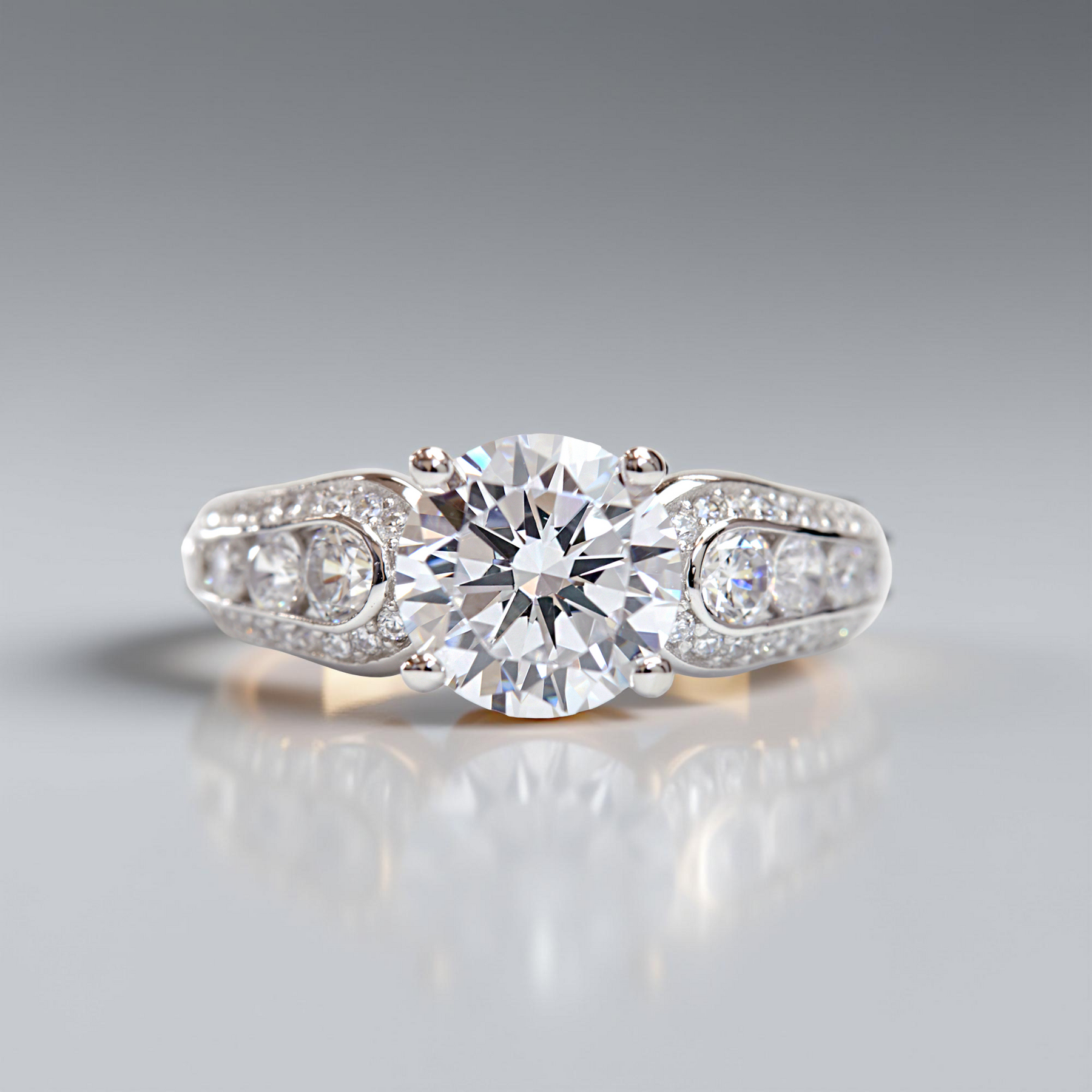 ✔ 2-carat center stone securely elevated for maximum brilliance