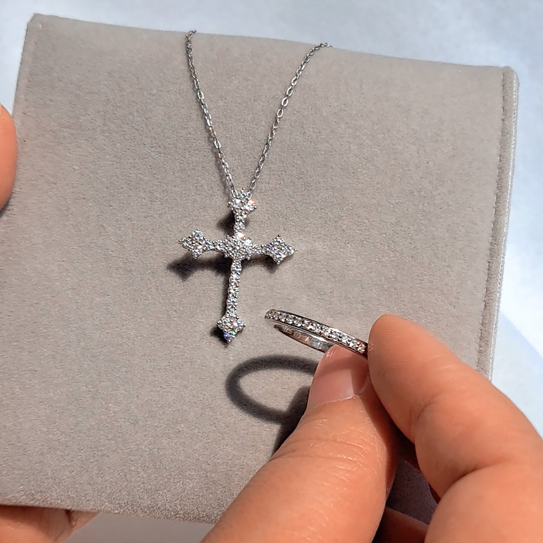 Victorian Diamond Cross Necklace (16" + 2" Extender): A timeless, vintage-inspired pendant handset with premium moissanite. The adjustable chain ensures a perfect fit for any neckline, making it a flawless gift.